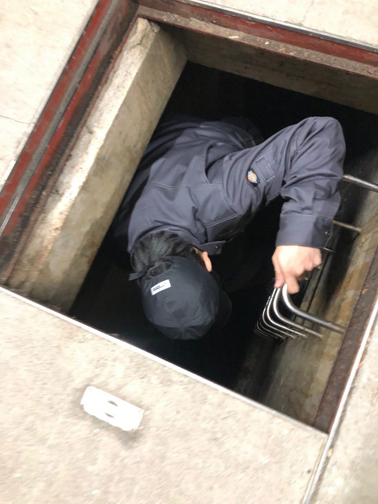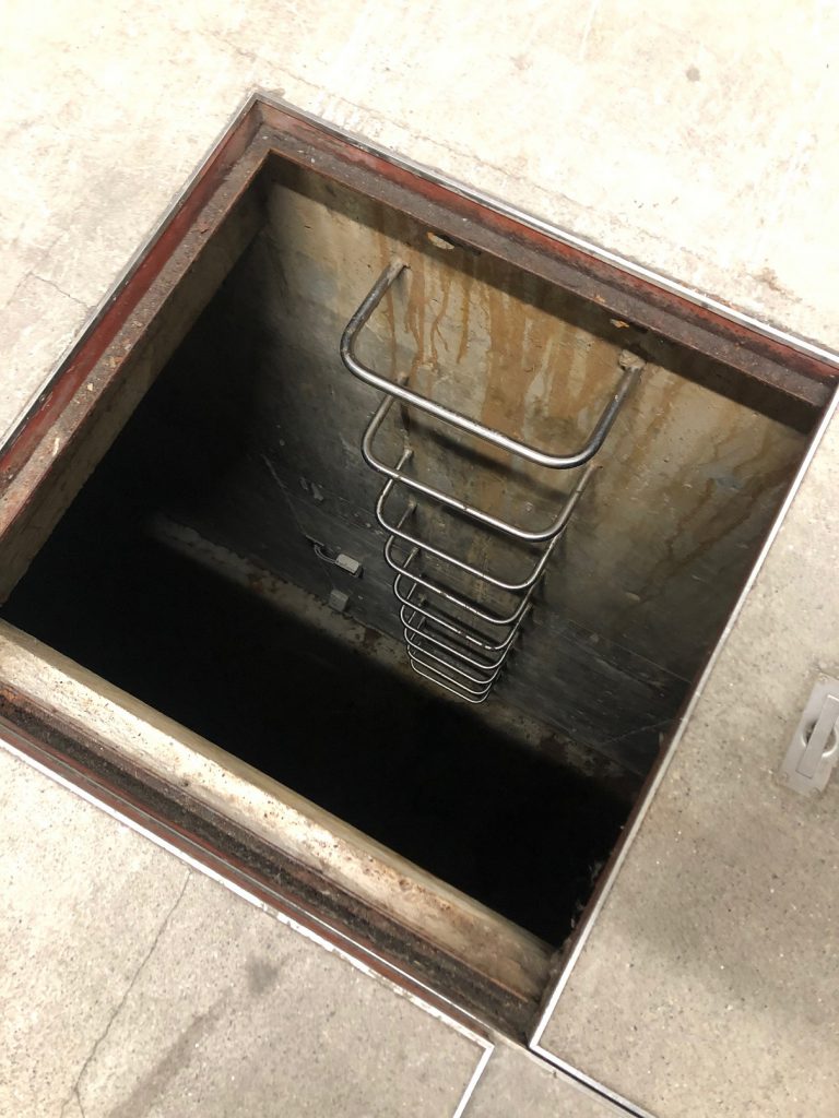 地下ピットの蓋を開口するときには必ず人が落ちないように対策をする必要があります。カラーコーンを立てるなり、人を立たせるなりしておかないともし落ちてしまったら大怪我では済まないかもしれません。十分に注意をし作業を行うことが求められます。