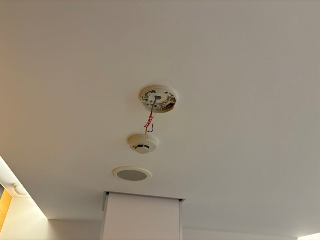 この方法を繰り返しだんだんとエリアを絞っていきます。今回の調査では共用部からフロア専有部に入った天井内埋設配線に原因がありました。今回の物件では配線の途中にいくつもの配線同士の接続箇所がありました。