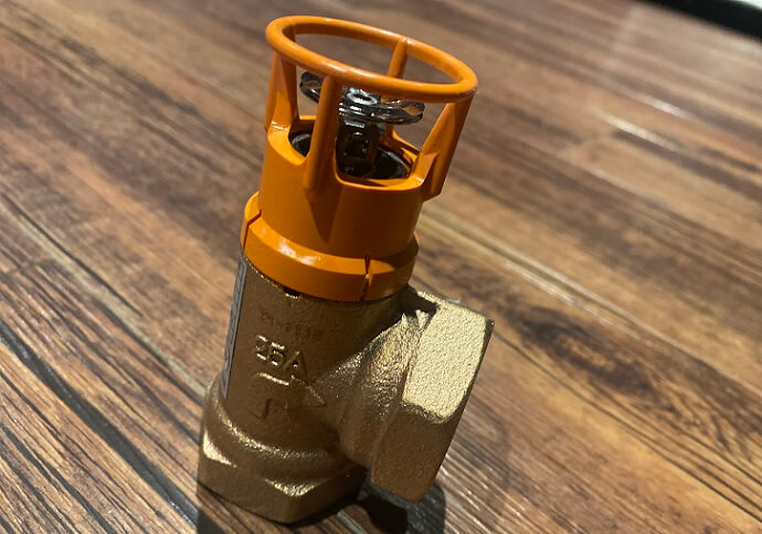 スプリンクラー配管は水を充満させて火災を警戒していますが、感熱開放継手で一旦水がストップします。感熱開放継手が熱を感知し一定以上の温度(今回72℃を使用)に到達したときに弁が開き、開放型ヘッドに水が一斉に流れ込みます。