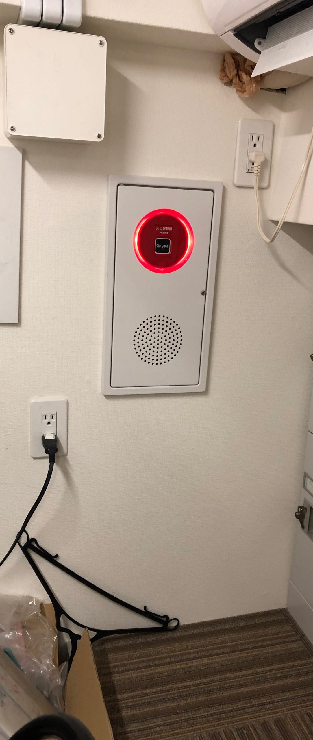 現場はとある物件の一室。この部屋は非常に狭く、総合盤を置く場所が限られてしまいます。とはいえ法令に従って設置する必要があるので要件に適合する場書へ設置する必要があります。