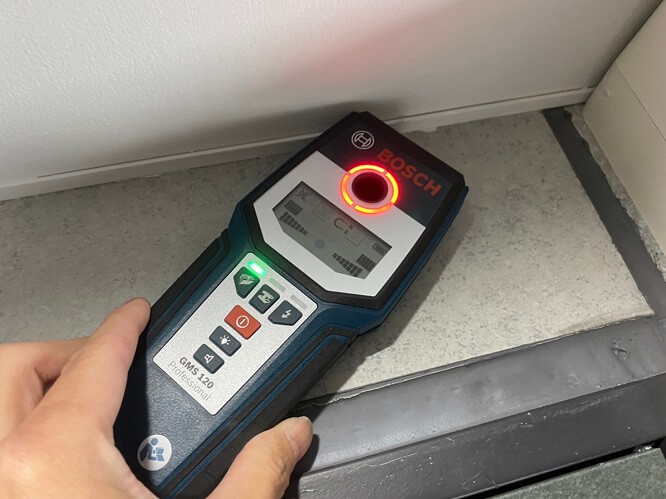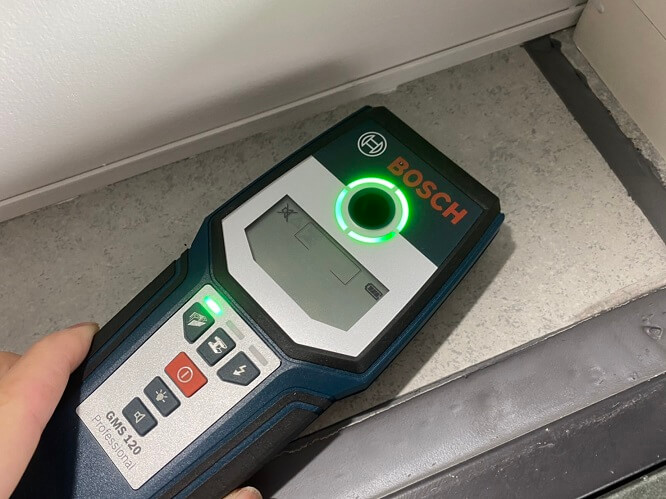 反対に青い表示である場合はそこには何もないということを教えてくれます。非常にシンプルです。ボッシュのスキャナーは非常に小さいので狭い場所を探索するときは強い味方となります。