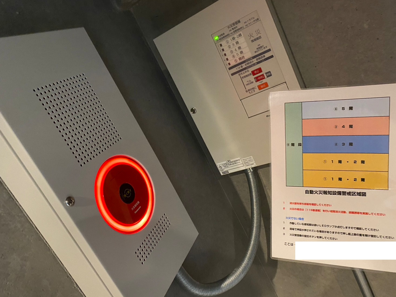 しかし、この物件の延べ面積は約400㎡強であり設置義務の範囲外です。それにもかかわらず、近年の火災による被害を受け、オーナー様の判断で安全対策の一環として設備の設置が決定しました。
