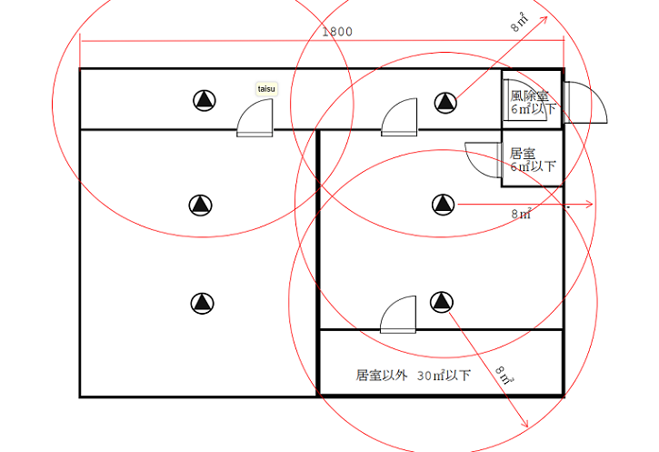 【スピーカーを中心とした半径が10メートル以下となるように、居室の各場所がスッポリ漏れなく入るように設置するということです。図面上で半径10mの円を書いて間仕切りを除いたすべての部分が包含できている必要があります。】