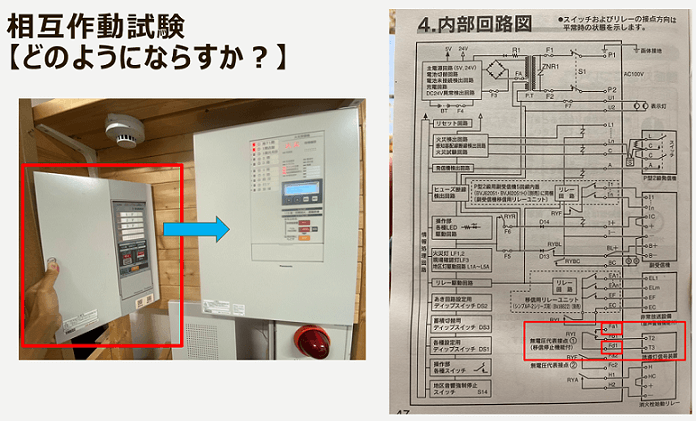火災報知器の回路、非常放送連動、火災通報装置連動、誘導灯連動、カットリレー