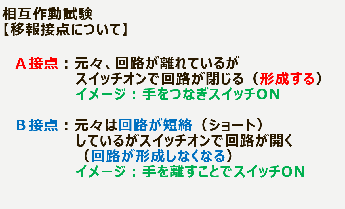 移封接点自体は無電圧接点ですが、画像の受信機ではDC30V-1Aまでかけることができます。自動火災報知設備の移封接点は主にA接点、B接点を使用します。AとBについては少し理解が必要になります。