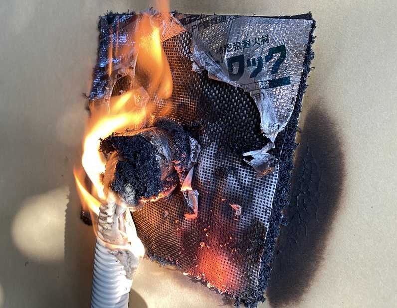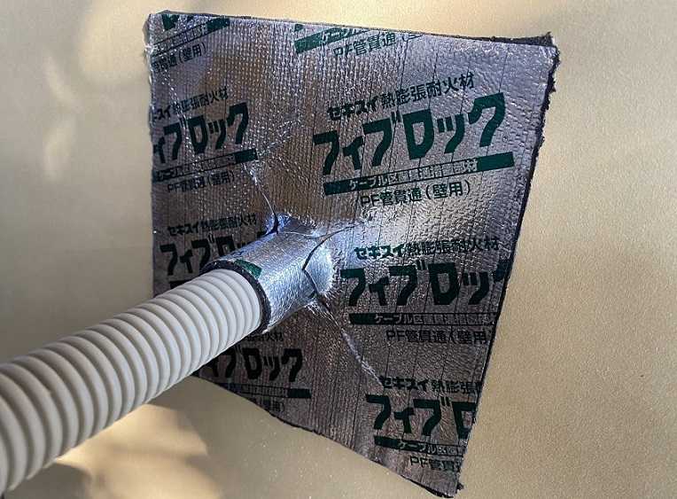 - フィブロックを燃やすと膨張し、PF管の穴を塞ぐ
