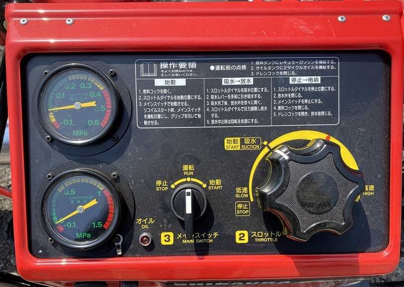 今回は動力消防ポンプの操作方法について書いていきます。消防ポンプ自体は様々なメーカーが製造していることと思います。今回は弊社で取り扱っているものになってしまいますが、操作方法の一例としてご紹介させていただきます。