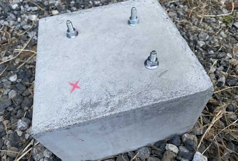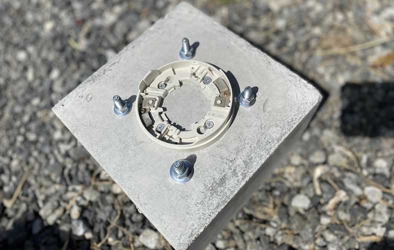 今回は直方体のコンクリートブロック(ピンコロ)に孔をあけてアンカーを打っていきたいと思います。またプラグを使った場合と、ビス直のとりつけの2パターンで火災感知器を取り付けていきたいと思います。