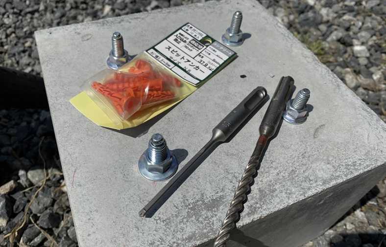 固定するものによって使用する材料や工法が違ってきます。軽いものであれば3.5mmの振動ドリル用ビットで孔を空け、コンクリート用ビスで簡単に固定することができます。