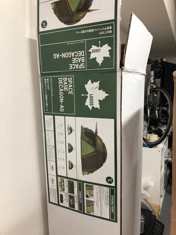 今回購入させていただきました製品はデザイン性に優れ、おしゃれキャンプメーカーで知られているロゴス社製のスペースデカゴン-AGという大型テントです。ロゴス社は海外のメーカーと思いきや1923年創業の大阪の会社です。