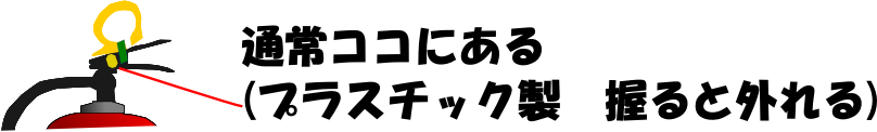 簡単に考えて、レバーを握る消火器以外は安全線が必要と覚えれば簡単です。安全線は一動作で容易に引き抜くことができ、引き抜きに支障のない『封』がされていなければなりません。大抵の消火器の『封』にはシールが使われています。