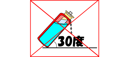 - 消火器を30度傾けた場合において、化学薬品が漏れないものであること