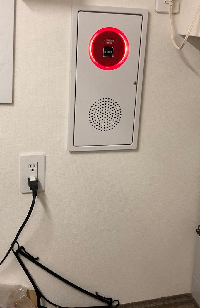 右上赤いボタンの操作スイッチ(音響停止スイッチ)