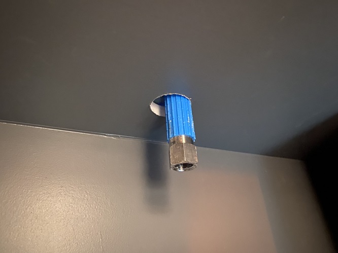 水を抜き終えたら配管工事が可能になります。画像ではヘッドが外れている状態で、完全に水が抜き切れていることが分かります。この状態でSPヘッドを取付けて天井に固定していきます。固定するまでカバーはそのままにしておきます。