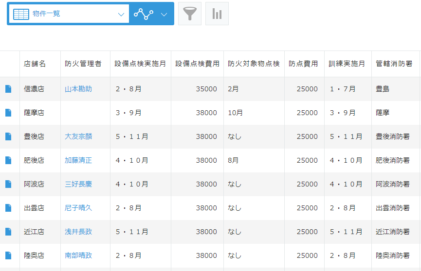 弊社で使用している管理アプリにアクセスしていただき、私どもが管理している画面を共有するといったものです。お客様ごとに個別のIDとパスワードを発行しオンライン上で「物件の状況」「防火管理状況」「各種点検情報」「報告書」「お見積書」「各種費用・表・グラフ」などのデータを確認することができます。