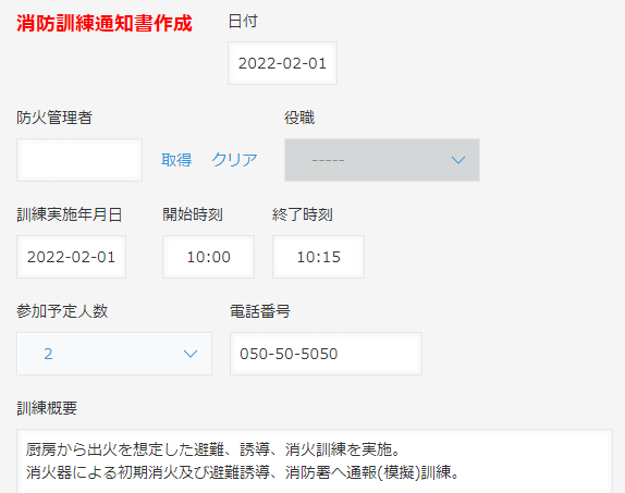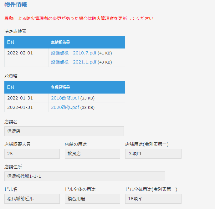 システム上に防火管理者を一度登録してしまえば、人事異動があっても簡単にシステム更新が可能です。防火管理者が変更した場合は各種届出が必要になります。そのような書類もシステム上で簡単に作成することが可能です。