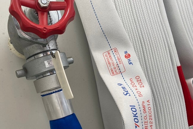 最後になりますが、高層階にはあらかじめ消火用放水器具【ホース、放水ノズル】を設置しておく決まりがあります。消防隊が装備を現場まで持っていく手間が省け素早い消火活動が期待されます。そのためには日頃のメンテナンスが非常に重要であります。