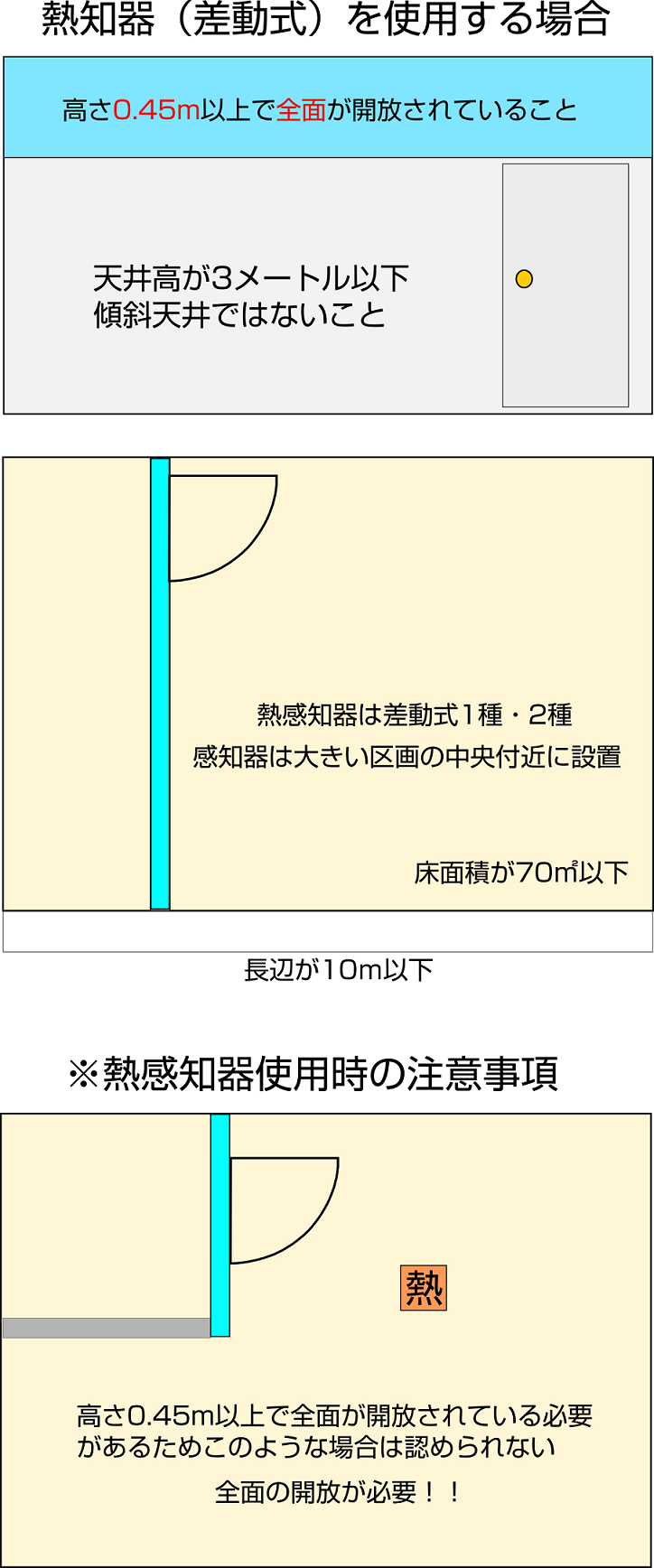 ・壁上部に開口部があれば感知器設置を免除できる場合がある