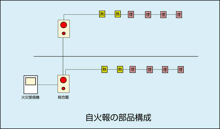 火災感知器は「火災受信機」という火災を監視する親機と連携し火災を警戒しています。感知器が熱や煙を感知し、その信号が火災受信機に送られベルやサイレンを鳴らします。