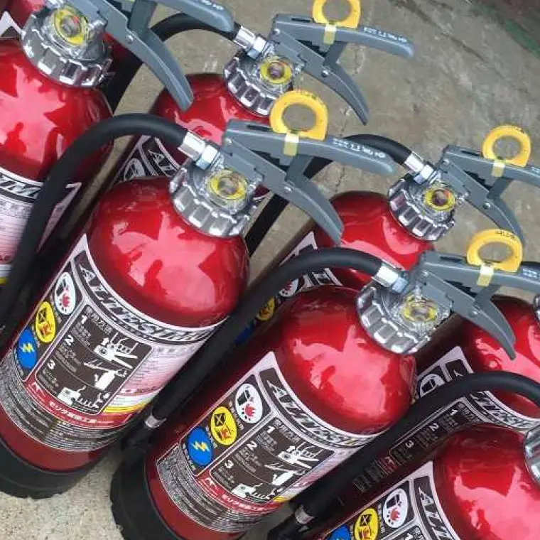 初期消火に欠かせない消火器。設置義務に応じた種類・本数の選定と、使用期限に応じた交換対応。