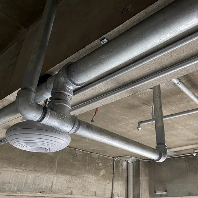 火災時に自動で散水して消火を行う設備。火災感知と同時に、局所的に水を散布し延焼防止に寄与します。